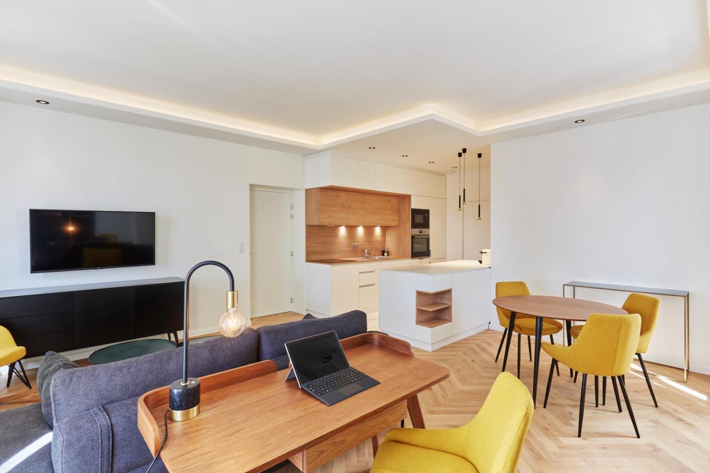 Appartement 1 Chambre. Featuring a private entrance, this air-conditioned apartment consists of a kitchen, 1 bedroom and 1 bathroom with a walk-in shower and a hairdryer. The fully equipped kitchen features a stovetop, a refrigerator, a dishwasher and kitchenware. The apartment provides a flat-screen TV with cable channels, a washing machine, soundproof walls, a tea and coffee maker as well as city views. The unit offers 1 bed.