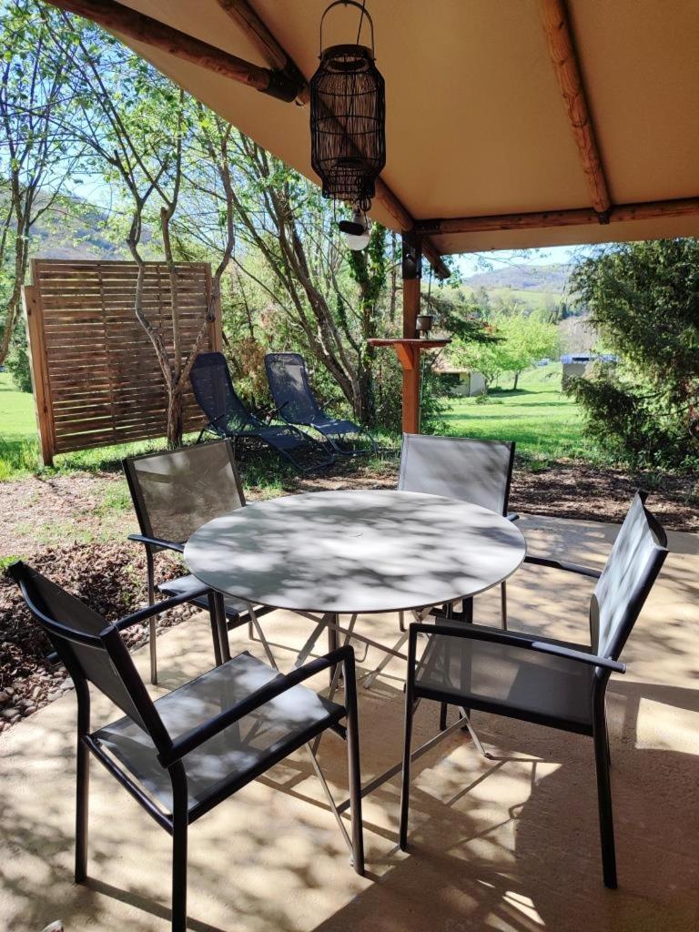 Tente. This tent features a private pool. Featuring a dining area, a wardrobe and a sofa, this tent includes a shared bathroom. Guests will find a stovetop, a refrigerator and kitchenware in the kitchenette. The tent also comes with a barbecue. The tent has a private entrance, a coffee machine, a seating area as well as a terrace with garden views. The unit has 3 beds. ;