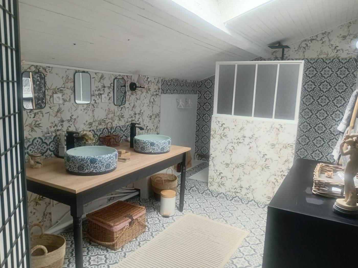 Chambre Double - Vue sur Jardin. Climatisée et insonorisée, cette chambre double spacieuse dispose d’une salle de bains privative avec une douche et d’une terrasse donnant sur le jardin. Ce logement comporte 1 lit.