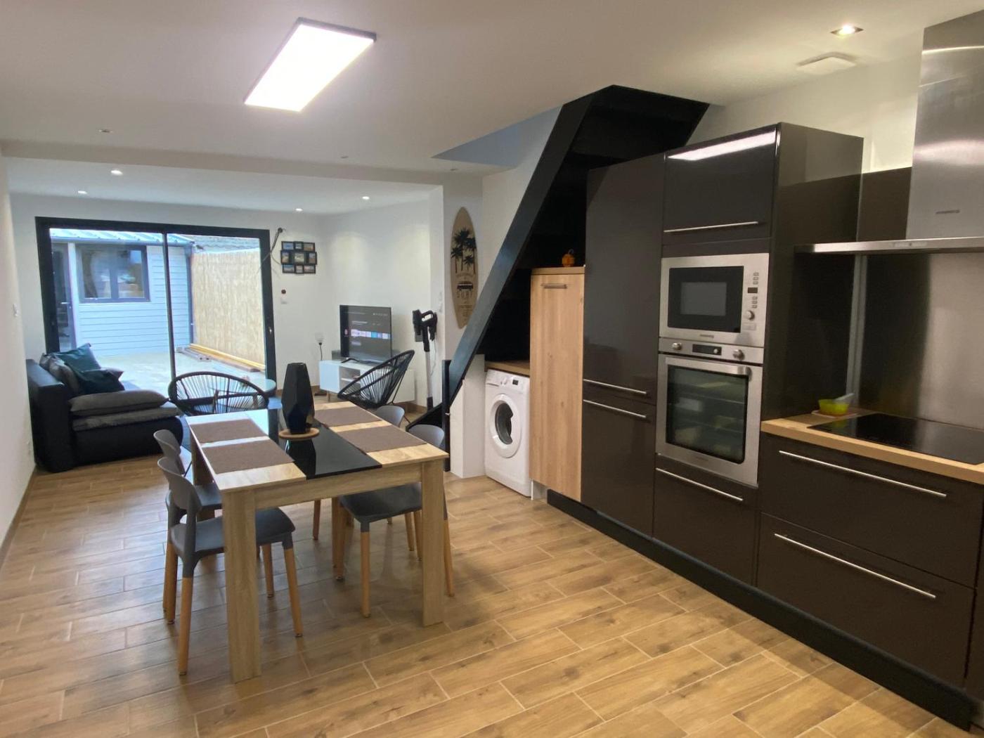 Maison 2 Chambres. This air-conditioned holiday home comes with 1 living room, 2 separate bedrooms and 1 bathroom with a shower. Guests can make meals in the kitchen that features a stovetop, a refrigerator, a dishwasher and kitchenware. Boasting a terrace with ancourtyard view, this holiday home also features a washing machine and a flat-screen TV with satellite channels. The unit has 4 beds.